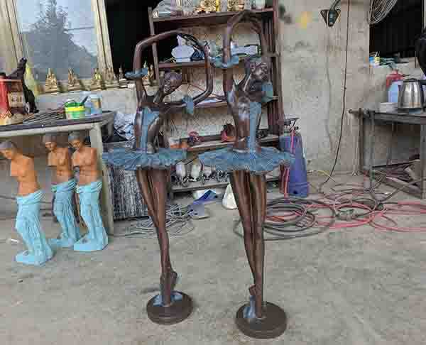 2、保證全流程純手工制作完成,制作師傅手藝純熟,成品銅舞蹈人物雕塑整體造型優美,細節雕刻細膩自然,拋光打磨處理到位,瑕疵極少。